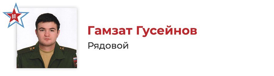 Рядовой Гамзат Гусейнов Рядовой Гамзат Гусейнов, действуя в составе батареи реактивной системы залпового огня, выполнял задачи по своевременной доставке боеприпасов на стартовые позиции боевых машин.